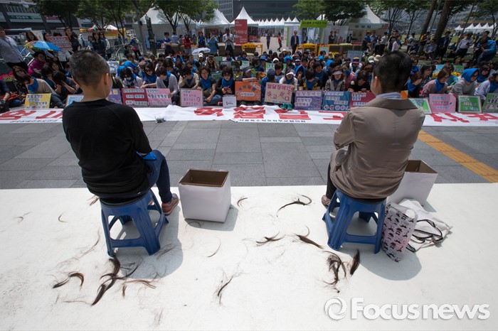 | △ 서울시 발달장애인 무기한 삭발투쟁 |