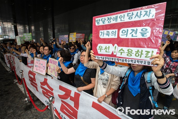 (서울=포커스뉴스) 25일 오전 서울 중구 서울시청 앞에서 서울시 장애인 부모회 회원들이 발달장애인 종합대책요구에 대한 기자회견이 열렸다.