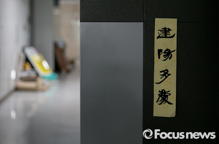 (서울=포커스뉴스) 20대 국회 개원식을 닷새 앞둔 25일 오후 서울 여의도 국회 의원회관의 한 의원실 문에 입춘을 맞이해 길운을 기원하는 글인 '건양다경(建陽多慶) 글귀가 붙어 있다.