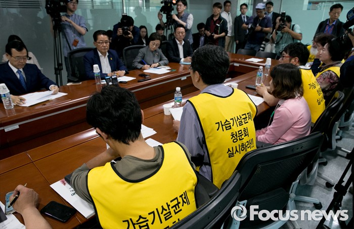 (서울=포커스뉴스) 박지원 국민의당 원내대표가 25일 오후 서울 여의도 국회 의원회관에서 가습기 살균제 피해자와 가족모임과의 면담을 하고 있다.