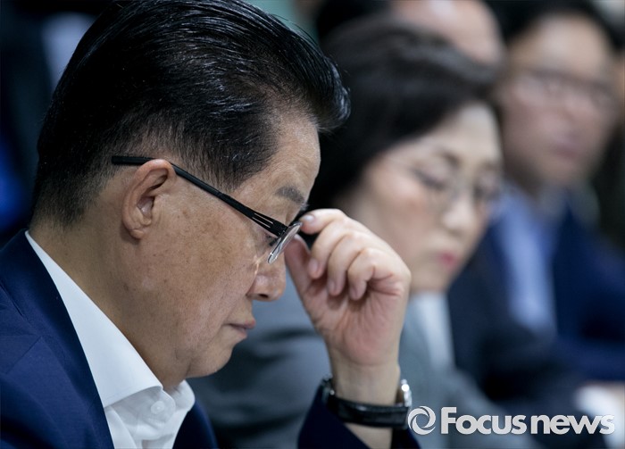 (서울=포커스뉴스) 박지원 국민의당 원내대표가 25일 오후 서울 여의도 국회 의원회관에서 가습기 살균제 피해자와 가족모임과의 면담 중 강찬호 대표의 발언을 듣고 있다.