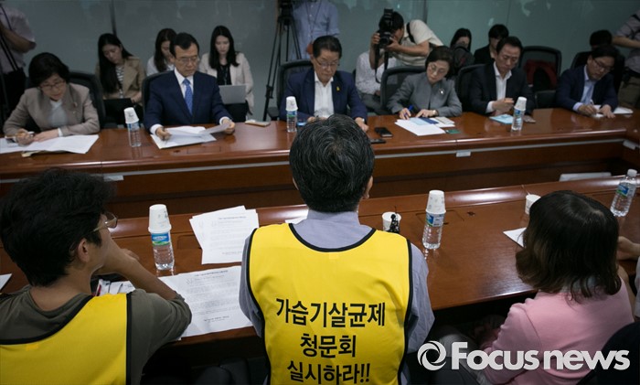 (서울=포커스뉴스) 박지원 국민의당 원내대표가 25일 오후 서울 여의도 국회 의원회관에서 가습기 살균제 피해자와 가족모임과의 면담을 하고 있다.
