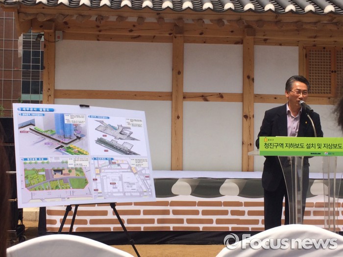 서울 종로구 김영종 구청장은 종로구 청진동 청진공원과 새로 개통되는 지하보행로에서 기자설명회를 열고 '청진구역 지하보도 설치 및 지상보도 개선사업'을 완료하고 지하보행로를 개통한다고 25일 밝혔다.