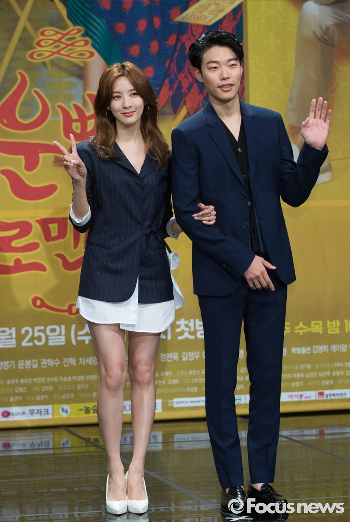 (서울=포커스뉴스) 25일 오후 서울 마포구 MBC상암사옥에서 열린 MBC 수목드라마 '운빨로맨스' 제작발표회에 참석한 배우 이청아(왼쪽)와 류준열이 포토타임을 갖고 있다.
