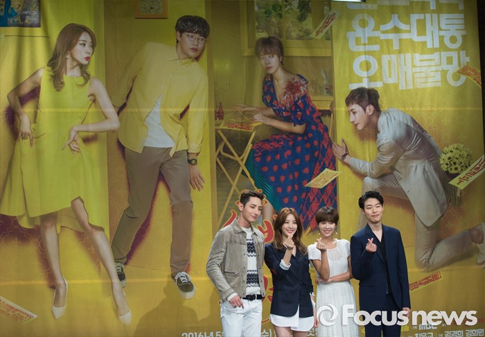 (서울=포커스뉴스) 25일 오후 서울 마포구 MBC상암사옥에서 열린 MBC 수목드라마 '운빨로맨스' 제작발표회에 참석한 배우 이수혁(왼쪽부터), 이청아, 황정음, 류준열이 포토타임을 갖고 있다.