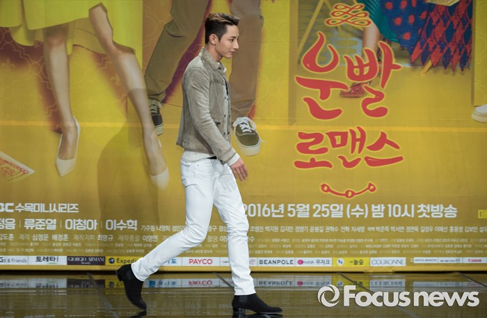 (서울=포커스뉴스) 25일 오후 서울 마포구 MBC상암사옥에서 열린 MBC 수목드라마 '운빨로맨스' 제작발표회에 참석한 이수혁이 포토타임을 위해 이동하고 있다.