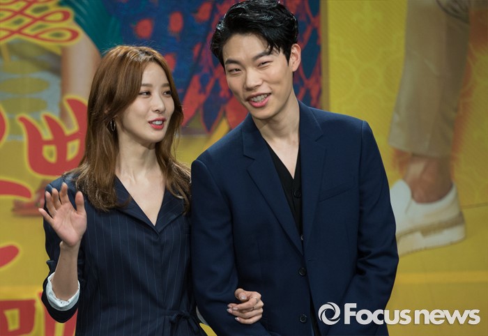 (서울=포커스뉴스) 25일 오후 서울 마포구 MBC상암사옥에서 열린 MBC 수목드라마 '운빨로맨스' 제작발표회에 참석한 배우 이청아(왼쪽)와 류준열이 포토타임을 갖고 있다.