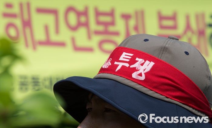 (세종=포커스뉴스) 25일 오후 세종시 정부세종청사 기획재정부 앞에서 공기업정책연대 구성원들이 성과연봉제 저지 및 강제퇴출제 반대 수요집회를 열고 성과연봉제 반대하는 구호를 외치고 있다.