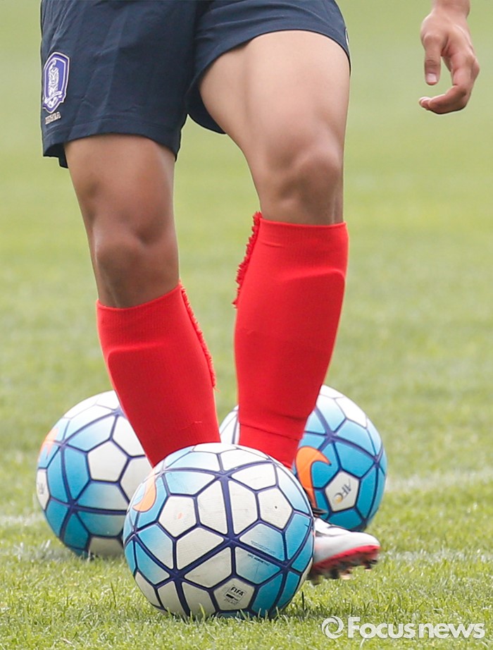 (파주=포커스뉴스) 이승우(18, 바르셀로나 후베닐A)가 25일 오후 경기도 파주 NFC에서 잉글랜드 U18(18세 이하) 대표팀과의 친선전을 앞두고 축구대표팀 선수들과 소집 훈련에 임하고 있다.
