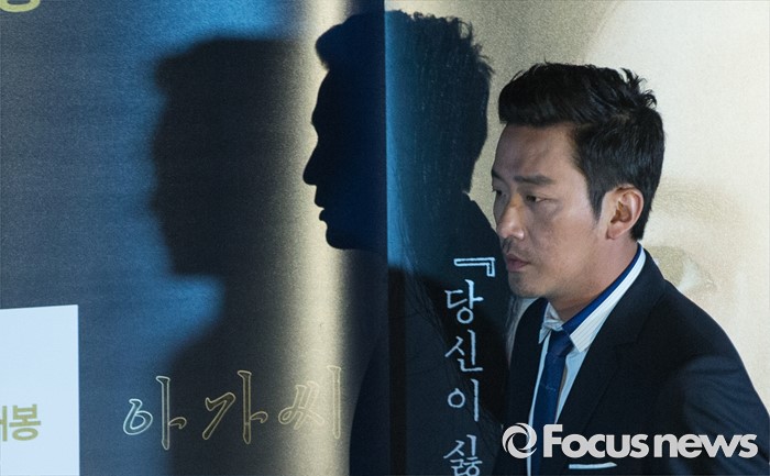 (서울=포커스뉴스) 25일 오후 서울 성동구 왕십리 CGV에서 열린 영화 '아가씨' 언론시사회에 참석한 배우 하정우가 이동하고 있다.