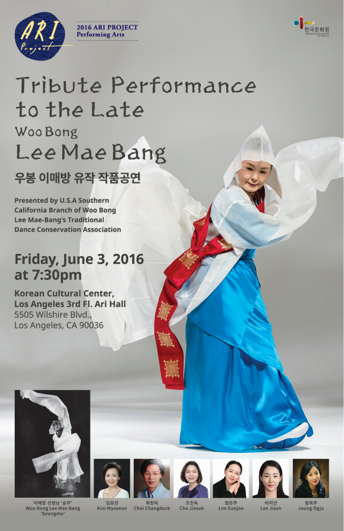 이번 공연은 오는 6월3일 오후 7시30분 미국 로스엔젤레스 한국문화원 3층 아리홀에서 개최된다. 앞서 로스앤젤레스 한국문화원은 공연작품 공모전 '2016 아리 프로젝트(ARI Project)을 통해 '우봉 이매방의 유작 작품'을 선정했다.