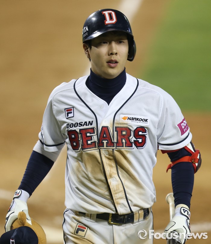 (서울=포커스뉴스) 25일 서울 잠실구장에서 열린 2016프로야구 kt-두산 경기 5회말 1사 1루에서 두산 박건우가 좌월 2점 홈런을 치고 밝은 표정으로 홈인하고 있다.