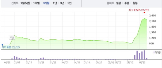 셀루메드는 26일 오전 9시40분 현재 전일 대비 2.01%(45원) 하락한 2190원에 거래되고 있다. 셀루메드는 외국인이 매수에 나서면서 19일 29.77%, 23일 29.96%의 상승폭을 기록하는 등 상승 곡선을 그려왔다.