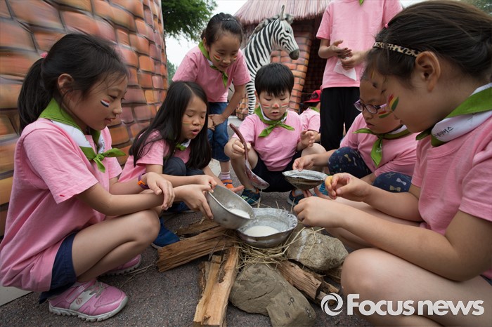 (서울=포커스뉴스) 26일 오전 서울 광진구 어린이대공원에서 열린 굿네이버스 '아프리카 희망학교 체험전'에서 초등학교 학생들이 아프리카 음식 만들기 체험을 하고 있다.