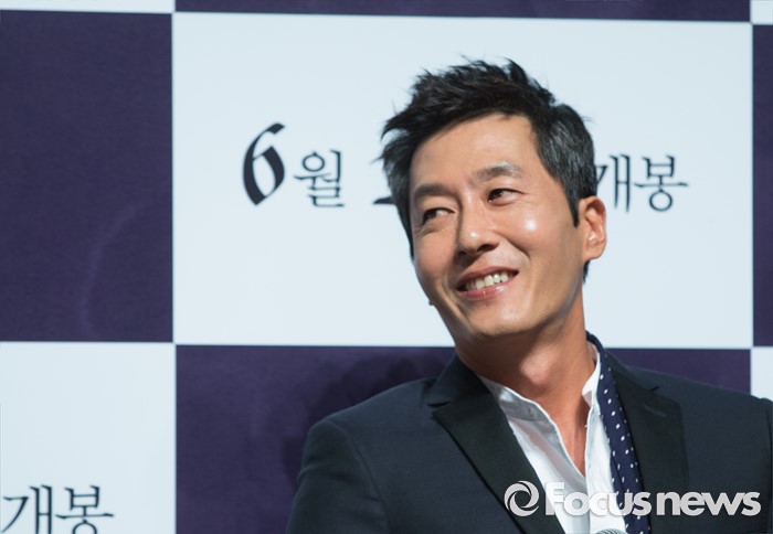 (서울=포커스뉴스) 26일 오전 서울 강남구 압구정 CGV에서 열린 영화 '비밀은 없다' 제작보고회에 참석한 배우 김주혁이 미소를 짓고 있다.