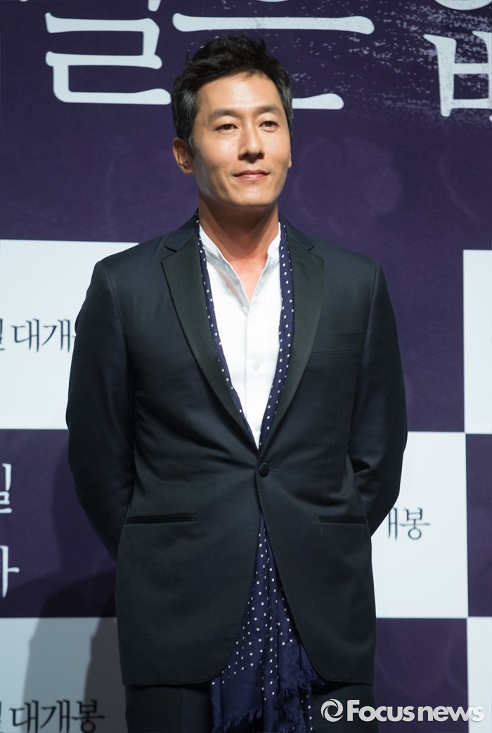 (서울=포커스뉴스) 26일 오전 서울 강남구 압구정 CGV에서 열린 영화 '비밀은 없다' 제작보고회에 참석한 배우 김주혁이 포토타임을 갖고 있다.