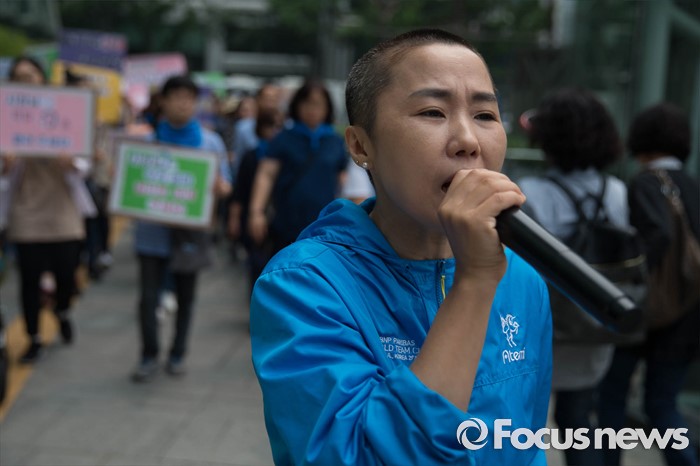 (서울=포커스뉴스) 26일 오전 서울시청 정문앞에서 전국장애인 부모연대와 서울특수학교학부모협의회원들이 발달장애인 정책 수립을 촉구하며 행진을 하고 있다.