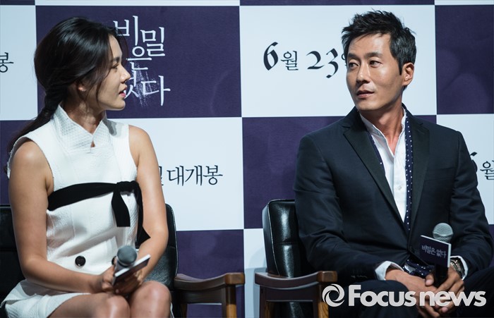 '비밀은 없다'는 선거를 15일 앞두고 사라진 정치인 종찬(김주혁 분)이 딸의 행방을 찾는 연홍(손예진 분)의 이야기를 담았다. 메가폰은 이경미 감독이 잡았다. 이는 오는 6월 25일 개봉 예정이다.(서울=포커스뉴스) 26일 오전 서울 강남구 압구정 CGV에서 열린 영화 '비밀은 없다' 제작보고회에 참석한 배우 손예진(왼쪽)과 김주혁이 주변을 살펴보고 있다. 2016.05.26 김유근 기자