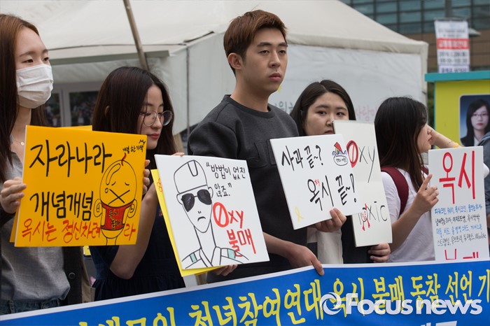 (서울=포커스뉴스) 26일 오후 서울 광화문광장에서 성공회대 학생모임과 청년참여연대 관계자들이 옥시 제품 불매 동참 선언 기자회견을 하고 있다.