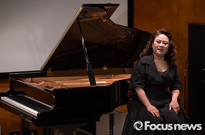 (서울=포커스뉴스) 26일 오후 서울 강남구 풍월당에서 피아니스트 서혜경이 '모차르트 피아노 협주곡 19, 20, 21, 23번' 쇼케이스에 참석해 연주를 마친 후 인사말을 하고 있다.