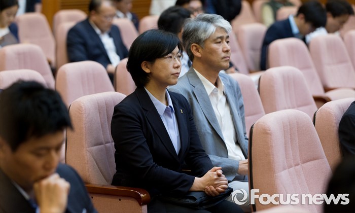 (서울=포커스뉴스) 26일 오후 서울 종로구 헌법재판소 대심판정에서 이정희 전 통합진보당 대표가 국회선진화법 권한쟁의 심판 선고 및 통합진보당 해산결정 재심 선고를 기다리고 있다.