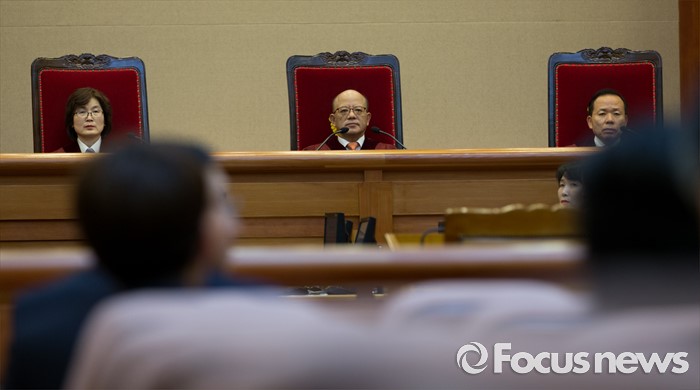 (서울=포커스뉴스) 26일 오후 서울 종로구 헌법재판소 대심판정에서 박한철 헌법재판소장이 국회선진화법 권한쟁의 심판 선고 및 통합진보당 해산결정 재심 선고를 위해 입장하고 있다.
