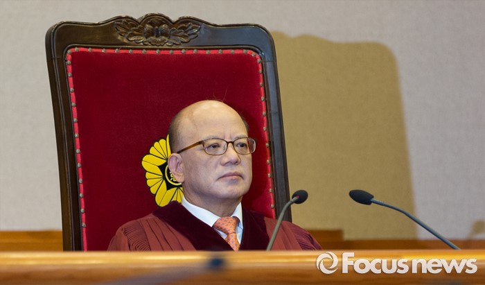(서울=포커스뉴스) 26일 오후 서울 종로구 헌법재판소 대심판정에서 박한철 헌법재판소장이 국회선진화법 권한쟁의 심판 선고 및 통합진보당 해산결정 재심 선고를 위해 입장하고 있다.