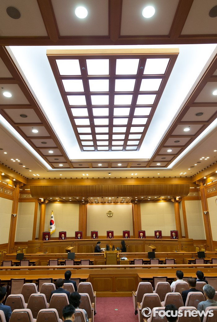 (서울=포커스뉴스) 26일 오후 서울 종로구 헌법재판소 대심판정에서 박한철 헌법재판소장이 국회선진화법 권한쟁의 심판 선고 및 통합진보당 해산결정 재심 선고를 위해 입장하고 있다.