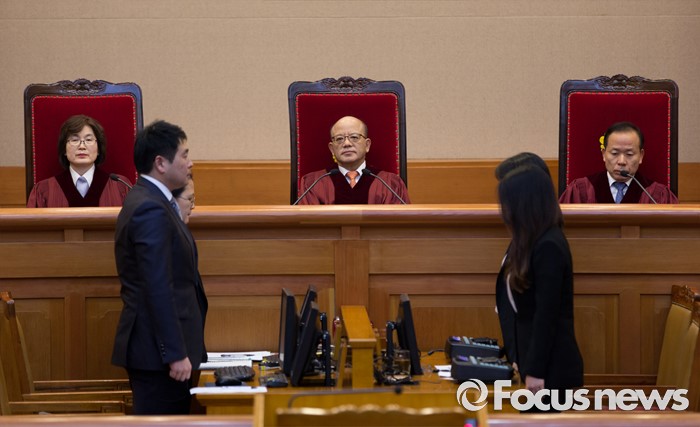 (서울=포커스뉴스) 26일 오후 서울 종로구 헌법재판소 대심판정에서 박한철 헌법재판소장이 국회선진화법 권한쟁의 심판 선고 및 통합진보당 해산결정 재심 선고를 위해 입장하고 있다.