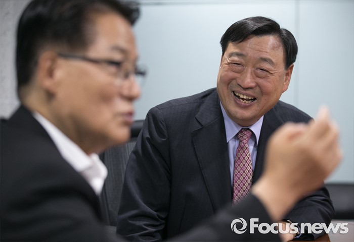 (서울=포커스뉴스) 박지원(왼쪽) 국민의당 원내대표가 26일 오후 서울 여의도 국회 의원회관에서 이희범 평창동계올림픽 조직위원장과 만나 면담을 하고 있다.