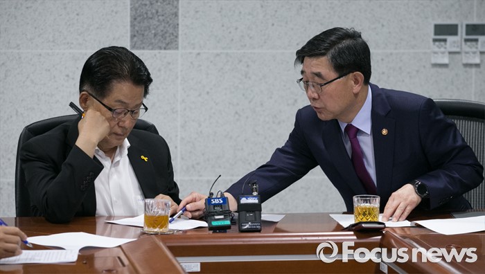 | △ 이기권 장관 설명 듣는 박지원 원내대표 |