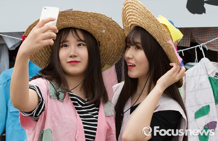 (음성=포커스뉴스) 26일 충북 음성군 음성읍 설성공원 일원에서 제17회 음성 품바축제가 열린 가운데 여학생들이 품바의상을 입고 셀카를 찍고있다.
