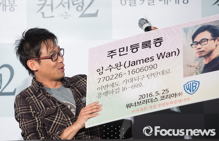 | △ [K-포토] 제임스 완 감독, 임수완 이름 마음에 들어요 |