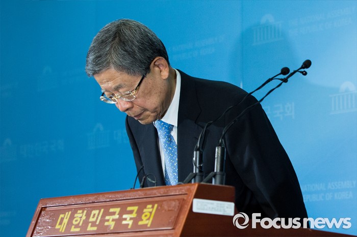 (서울=포커스뉴스) 새누리당 임시지도부인 혁신비상대책위원회 위원장에 내정된 김희옥 전 정부공직자윤리위원장이 26일 오후 서울 여의도 국회에서 혁신비대위 계획을 발표 하기 앞서 인사 하고 있다.