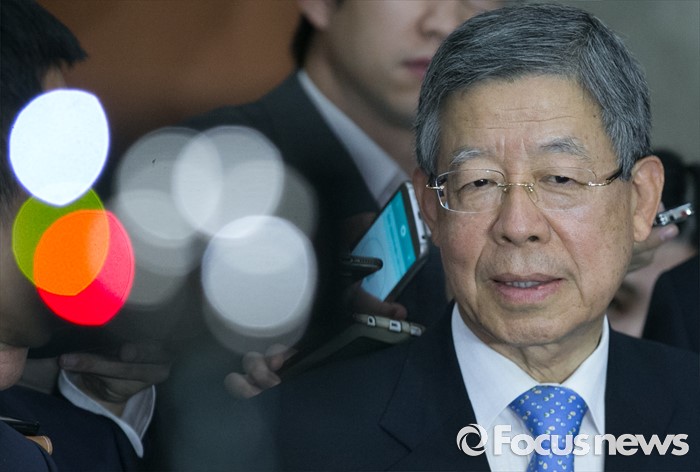 (서울=포커스뉴스) 새누리당 혁신비대위원장에 내정된 김희옥 전 동국대 총장이 26일 오후 서울 여의도 국회 정론관에서 기자회견을 마친 뒤 취재진 질문에 답하고 있다.