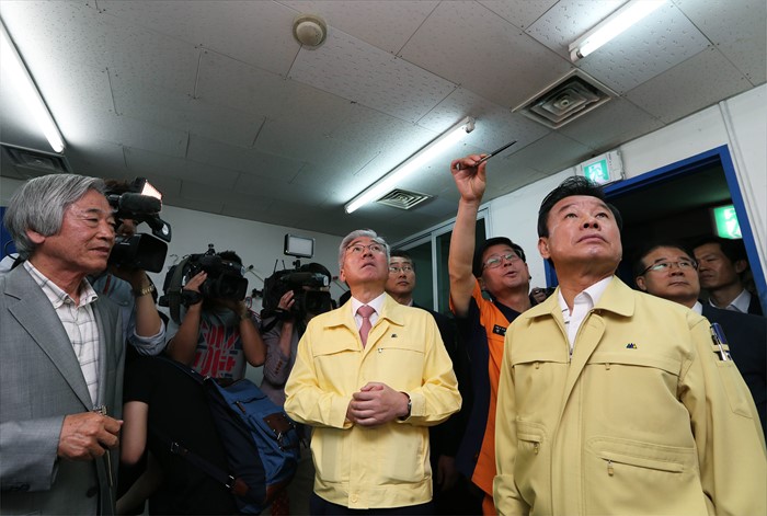 (서울=포커스뉴스) 26일 서울 대학로에 위치한 소극장에서 문화체육관광부와 국민안전처가 서울시·공연장안전지원센터·한국소극장협회 등 민관 합동으로 공연장 안전관리 실태에 대해 현장점검을 실시했다. 이날 김종덕 문체부 장관, 박인용 국민안전처 장관이 소극장 안전관리 실태를 점검하고 있다. <사진제공=문화체육관광부>