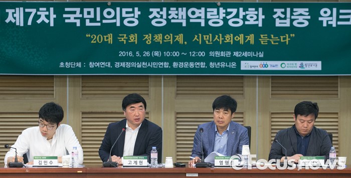 국민의당은 이날 오전 국회에서 '20대 국회 정책의제, 시민사회에게 듣는다'라는 제하의 제7차 정책역량 강화 집중 워크숍을 열고 경제정의실천시민연합·참여연대·환경운동연합·청년유니온 등 시민단체 관계자들의 발표를 듣고 20대 국회에서 논의할 주요 의제와 정책 방향에 대해 토론하는 시간을 가졌다.