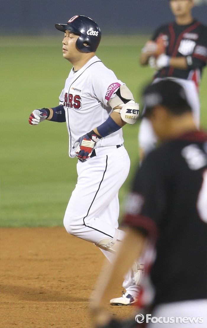 (서울=포커스뉴스) 26일 서울 잠실구장에서 열린 2016프로야구 kt-두산 경기 5회말 두산 선두타자 양의지가 좌월 솔로 홈런을 날리고 베이스를 돌고 있다.