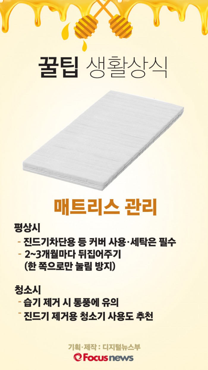 (서울=포커스뉴스) 매트리스, 단지 눕기만 해선 안됩니다. 오늘의 생활상식, 매트리스 관리 방법입니다.