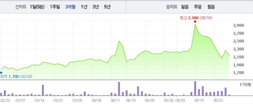 씨씨에스는 27일 오전 9시44분 현재 전일 대비 6.18%(140원) 하락한 2125원에 거래 중이다. 같은 시각 한창은 전일 대비 5.56%(320원) 떨어진 5440원에 거래되고 있다.