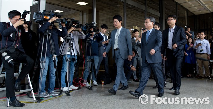 (서울=포커스뉴스) 정운호 네이처리퍼블릭 대표 로비 의혹에 연루된 홍만표 변호사가 27일 오전 서울중앙지방검찰청으로 출석하고 있다.