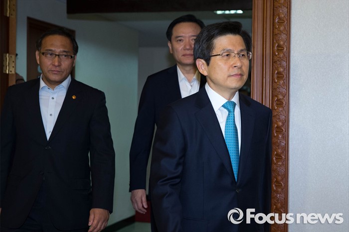 (서울=포커스뉴스) 황교안 국무총리가 27일 오전 서울 종로구 정부서울청사에서 열린 임시 국무회의에 참석하기 위해 회의실로 입장하고 있다.