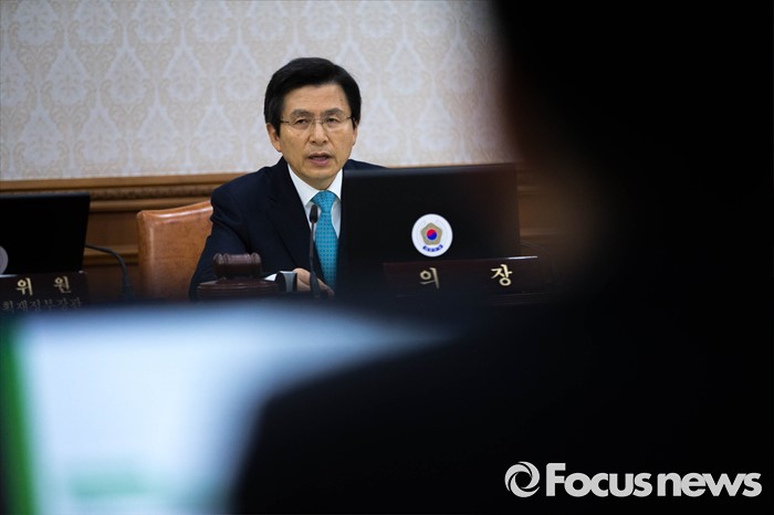 (서울=포커스뉴스) 27일 오전 서울 종로구 정부서울청사에서 열린 임시 국무회의에서 황교안 국무총리가 모두발언을 하고 있다.