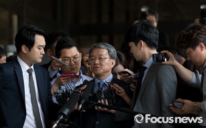 (서울=포커스뉴스) 정운호 네이처리퍼블릭 대표 로비 의혹에 연루된 홍만표 변호사가 27일 오전 서울중앙지방검찰청으로 출석하고 있다.