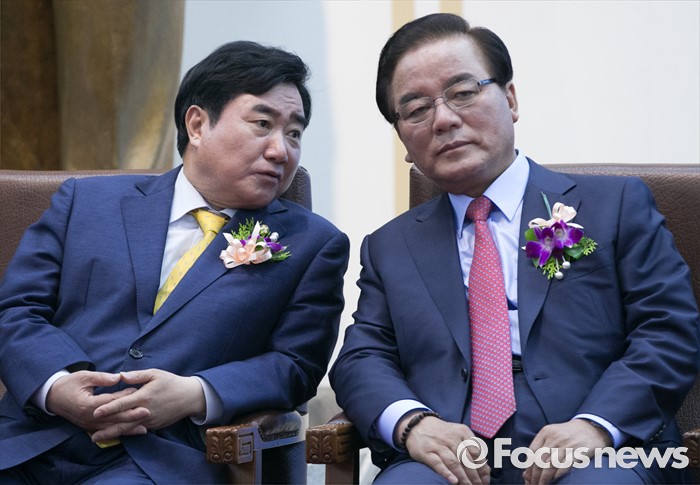 (서울=포커스뉴스) 27일 오전 서울 여의도 국회에서 열린 68주년 국회 개원 기념식에 참석한 정갑윤(오른쪽), 이석현 국회 부의장이 대화하고 있다.
