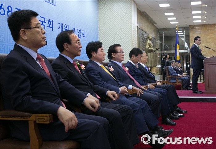 | △ 국회의장 발언 듣는 정당 참석자들 |
