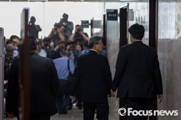 (서울=포커스뉴스) 김희옥 새누리당 비상대책위원장 내정자가 27일 오전 서울 여의도 국회에서 정진석 새누리당 원내대표와 상견례를 하기 위해 이동 하고 있다.
