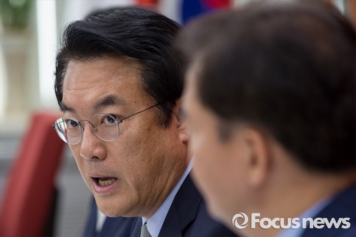 (서울=포커스뉴스) 정진석 새누리당 원내대표가 27일 오전 서울 여의도 국회에서 국회법 개정안 관련 대통령 거부권 행사 및 당 조직구성에 대한 야당의 입장발표에 대해 발언 하고 있다.