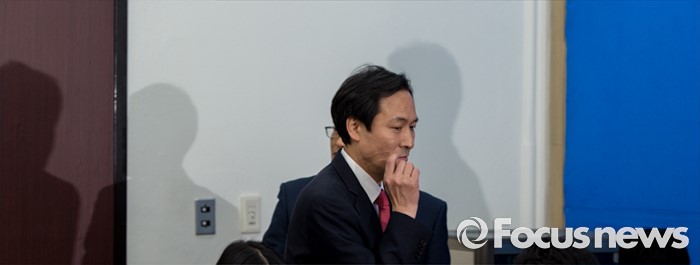 (서울=포커스뉴스) 우상호 더불어민주당 원내대표가 27일 오전 서울 여의도 국회에서 국회법 개정안 관련 대통령 거부권 행사에 대해 입장발표를 하기 위해 회의실로 들어서고 있다.