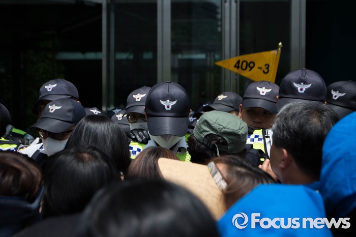| △ 어머니들 앞에서 '고개 숙인 경찰' |